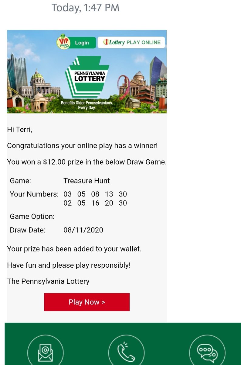 Pennsylvania Lottery Treasure Hunt Draw Games Results